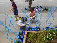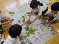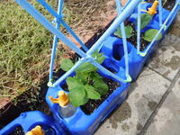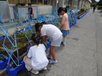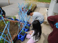 2年生が育てている野菜の丈が大きくなってきました。そこで、今日子ども達は支柱をたてていました。今後、ぐんぐん大きくなることが予想される苗たちですが、これで一安心ですね。子ども達は水をあげながら、「美味しくなるかな。」「ピーマン好きなんだ!」と収穫を楽しみにしていました。