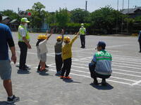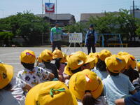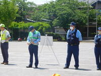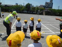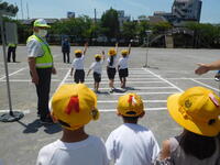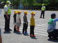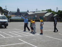 午前中、1年生は流山警察、交通安全協会、交通安全推進隊の皆様をお迎えして、交通安全教室を行いました。警察の方から、道路の歩き方、安全の確認の仕方、横断歩道の渡り方などを教えていただきました。渡り方を練習する時には、丁寧に左右を確認し、高く手を挙げて渡ることができました。日常の生活に生かして、安全に道路を通行してほしいです。