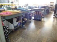 地震発生の放送がかかると、1年生は素早く机のしたに潜って頭を守る姿勢をとり、次の指示が出るまで静かにじっと待つことができました。