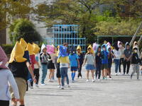 続いて、校庭への避難です。決められた順番を守って並び、早くでも安全に気を付けて校庭まで避難することができました。今日は、避難経路を知ることも大切な目標でした。事前の担任からの話をしっかり聞き、正しい経路を通ることができたようです。