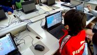 国語の「へんとつくり」の学習をパソコンのViscuitというプログラミングソフトを活用して行いました。漢字の「へん」と「つくり」を部首ごとにパーツ分けをし、パーツが組み合わさると漢字ができるというプログラミングを体験しました。子供達はいろいろな漢字を作り、とても楽しそうに活動をしていました。