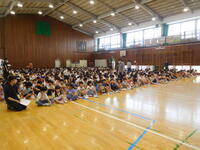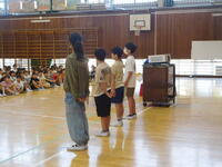 はじめに陸上大会の表彰を行いました。頑張った選手たちが全校に紹介されました。ミニバスケットボール部、音楽部もがんばってほしいです。