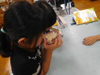 今日は、キッコーマンから講師をお招きして、3年生がみりん塾で学習しました。みりん博士から、みりんの原料や作り方、料理で使うことの良さなどを教えていただきました。子ども達熱心に話を聞いて、わかったことをノートに書き留めていました。実際にみりんの絞り粕を見せてもらうと興味心身で顔を近づけてみたり、においをかいでみたりしていました。