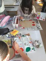切る作業が終わったら、おもいおもいに色をぬっていきます。