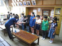 5月12日(水)の業間休みに、学級委員任命式が校長室で行われ,各学級2人ずつ、計10名の学級委員が校長先生から任命書を受け取りました。どういうクラスにしていくか,学級委員から目標が述べられ,その表情はとても引き締まっていました。