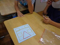算数の学習では、三角形と四角形を利用して、色々な模様を作りました。