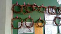 朝顔のつるから、丸い輪を作っています。今後、リースに飾り付けをしていく予定です。