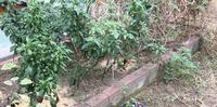 中庭の野菜は枯れ、秋の味覚である さつまいも がぐんぐん育っていました。