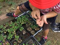学級園で取れるパセリは、学校のウサギさんたちの大好物です。
