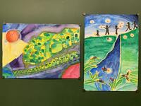 5年生では、図画工作の課題として絵画に挑戦しています。