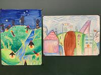 自分の理想の街を描いたり、蛍が舞う夜の丘を描いたりしています。