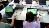 菅先生指導のもと、電源の入れ方やマウスの操作の仕方を遊びを通して学びました。