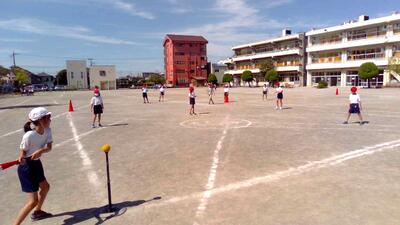 10月1日(金)5年生 体育 ティーボール
