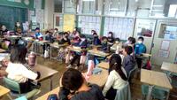 家庭科「くふうしようおいしい食事」では、一食分の献立作りに挑戦!給食の献立表を見ながら、主食・おかず・汁物に分かれていることや食材を五大栄養素に分類するなどしました。また、学校栄養教諭の話を聞いて、献立を考える上での注意点についてお話を頂きました。その後の話し合いでは、自分が考えた献立を班の人に力説!最終決定した6年1組から4組のリクエスト給食は1月に全校のみんなでいただきます。楽しみですね。