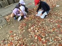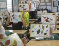 その落ち葉を使って、図画工作の学習「あつめて、ならべて、いいかんじ」に取り組んでいます。
