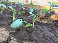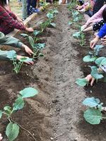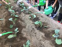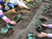 学年の畑で育てていた野菜の収穫が終わり、次にブロッコリーの苗を植えました。