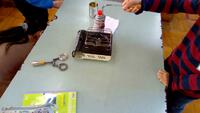 写真は金属の玉が輪を通るかで体積の変化があるかを調べている様子です。