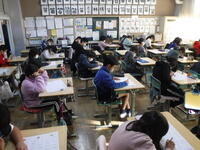 2学期のまとめの50問テストを各クラス行いました。子供達は今回のテストに向けて空き時間や自主学習などの時間を使い、勉強をしていました。自分なりにやり方を工夫して、満点を目標に取り組んでいました。テストを返却された時には、喜ぶ子や悔しがる子などさまざまでしたが、全体的には前回よりも得点の伸びた子がほとんどでした。3学期には、1年のまとめの50問テストがあります。最後のテストに向けての子供達の頑張りを期待しています。