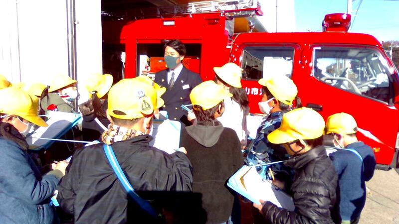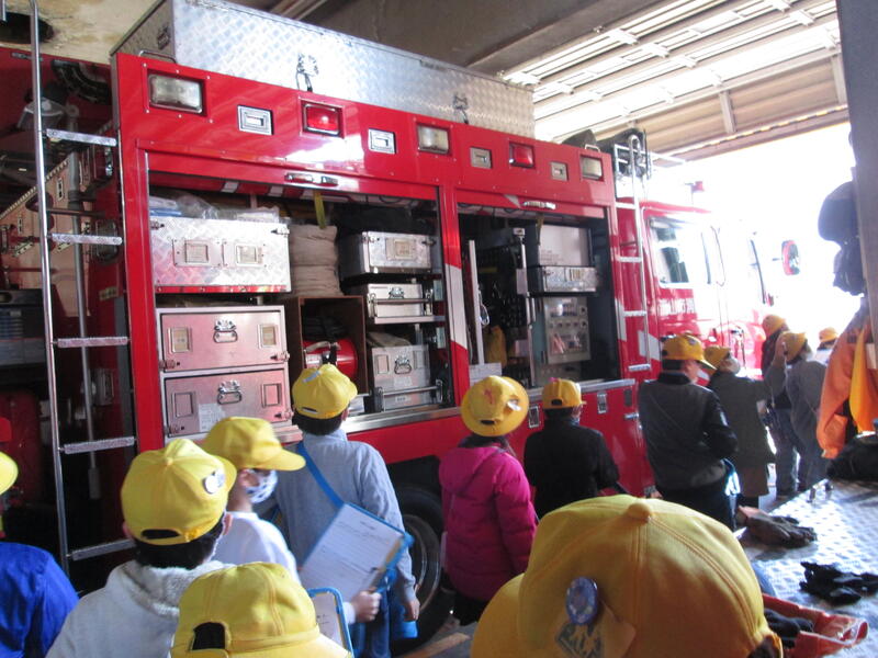 質問を事前に考え、消防署ではそれに答えていただいたり、消防車や救急車の中を見せていただいたりしました。