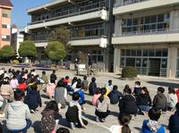 本日は、流山小学校の修了式でした。晴れやかな暖かい天気でありましたので、校庭で行いました。