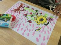 図工の学習では、クレヨンを使って「すきなもの いっぱい」を描きました。