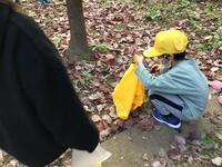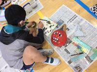 生活科の学習で、落ち葉を拾ってお面を作りました。