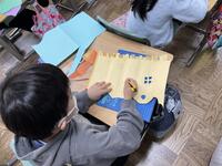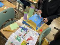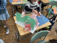 前回、国語の「しかけ絵本をつくろう」で勉強した技法を駆使しながら楽しそうに作っていました。