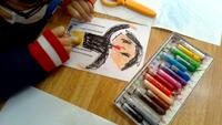 あなをくぐりぬける自分も画用紙に描き、実際にいったような感覚になりうきうきしている姿を