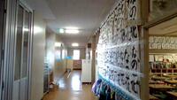 校内書き初め展では、各クラスの廊下に先日席書会で練習した「なの花」が展示されました。