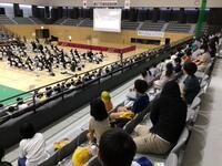記念式典の当日は学校で生中継を見るグループとキッコーマンアリーナに行くグループに分かれました。