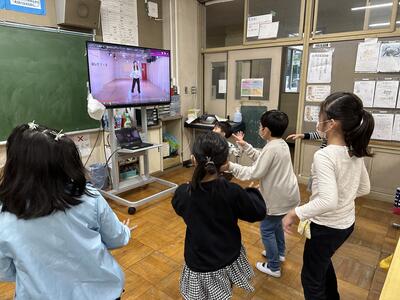 運動会練習でキャラクターを踊っていますが、休み時間になると自主的に踊り出すダンサー達が沢山います。