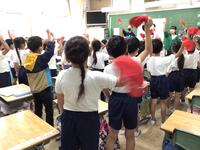 12日に6年生のお兄さん、お姉さんから応援合戦のやり方について教えてもらいました。