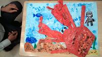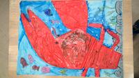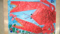 新聞紙を使い、ザリガニやカニなど、一生懸命に作成しました。