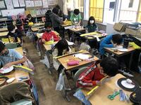 家庭科の学習では,ミシンを使ってエプロンを製作しています。はじめてミシンを使う児童がほとんどでしたが,回数を重ねていくうちに手早く,正確に縫うことができるようになりました。