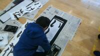 席書会で書いた作品を、校内書き初め展(17日、18日)で展示します。
