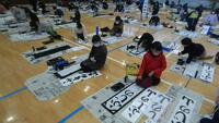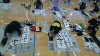 3学期始まって3日目。校内席書会が体育館で行われました。