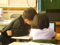 3年生の流山市についての学習では、タブレットが大活躍です。みんなで考えを出し合いながら協力して検索し、そこで見つけた情報をみんなで仲良く共有する姿がとても素敵です。今日は、流山小学校の周りの様子がよく分かったようです。