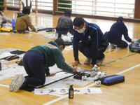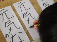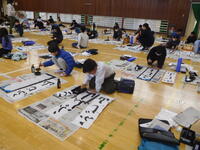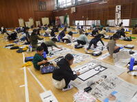 今日は、3年生が席書会を行いました。冬休みの練習の成果を発揮して、大きく元気な文字を書いていました。