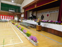 明日は、入学式です。午前中6年生が入学式準備、午後は職員が残りの作業を行いました。