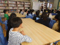 今日は、4年6組が、図書室で学習をしていました。学校図書館司書の須藤先生から、図書室の利用の仕方や、本の探し方などを教えていただきました。趣味としての読書はもちろんのこと、資料探しや言葉・漢字の学習など、たくさん図書室に足を運び、本と触れ合ってほしいです。