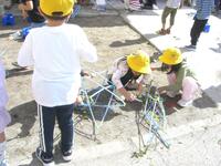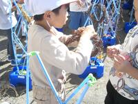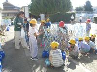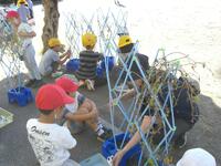 先週、1年生はアサガオのツルを抜き、リースを作りました。長く育ったツルは、複雑に絡まり合い、ほどくのは大変な作業でしたが、粘り強く取り組んで、みんな無事にリースにすることができました。このリースは、このあと飾りつけを行い、きれいにして家に持ち帰ります。