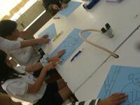 10月16日、17日に彫刻家の大野隆司さんをお招きして、4年生が版画教室を行いました。細かな彫刻刀の動きをモニターに写しながら説明してくださって、子ども達も集中して取り組むことができました。また、大野先生は「失敗も5秒落ち込んだら切りかえて次に進む」と繰り返しおっしゃられ、失敗を恐れず、明るく取り組む雰囲気を作ってくださったので、子ども達の笑顔がたくさん見られました。