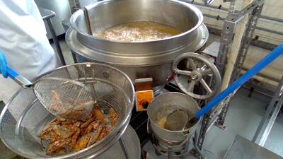 今日のたけのこご飯には、香川県産のたけのこを使いました。たけのこは薄切りにして、鶏ひき肉、油揚げと一緒に甘辛く煮ました。油揚げは、調理員さんの発案で、フードプロセッサーにかけて粗みじん切りにしました。油揚げの食感が弱まり、たけのこを引き立ててくれました油揚げのみじん切りは、鶏ひき肉の代用にもなりそうです。