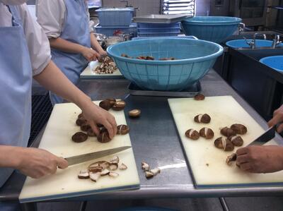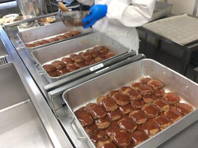 作業が4工程あるので、1180個作るのに、調理員さん4人で給食時間ギリギリまでかかりました手間はかかりましたが、見栄えも良く調理員さんも大満足