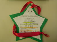 今日は、1年4組に4年5組から1年生を迎える会の招待状が届きました。1年生の教室に行く前、4年生は出来上がった招待状を掲げながら、クラスの集合写真を撮っていました。とてもにこやかで満足そうな笑顔が素敵でした。招待状をかけてもらった1年生は、食い入るようにそれを見て、とてもうれしそうでした。明日はいよいよ迎える会です。