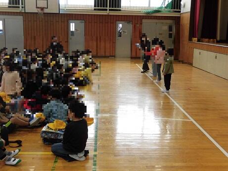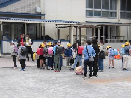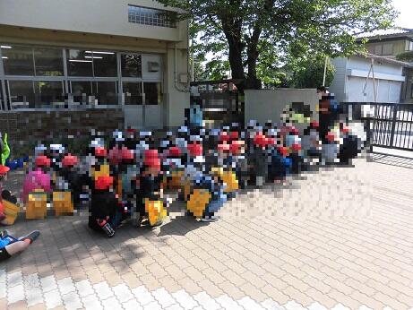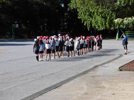 その後、校庭に出て地区ごとに集まって集団下校をしました。