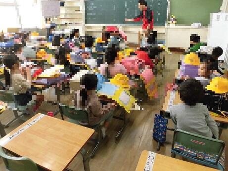 お家の人たちは心配で朝校門まで一緒に来てくれる方も何人かいらっしゃいましたが、1年生本人たちはどこ吹く風で元気に教室まで入って担任の先生のお話もしっかり聞いていました。