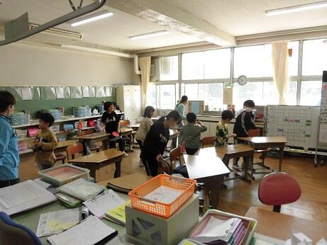 担任の先生だけでは大変なので6年生がお助けに来てくれました。