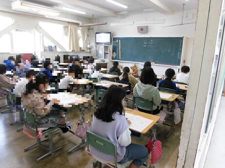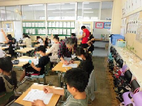 1年生以外はどこの教室に行ってもテスト中で、難しい顔をして問題に取り組んでいる児童が多かったです。