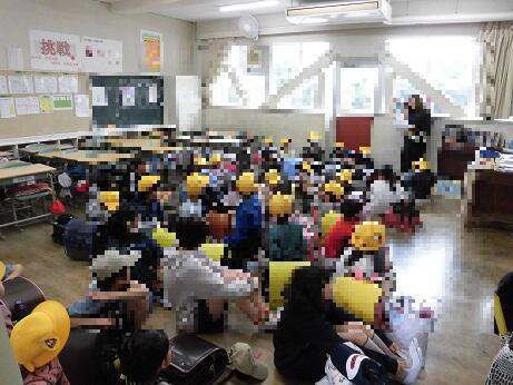 初めに地区ごとに教室に集まり、6年生の班長さんからのお話を聞いたり、地区のお家の方々からの注意を聞いたりしました。